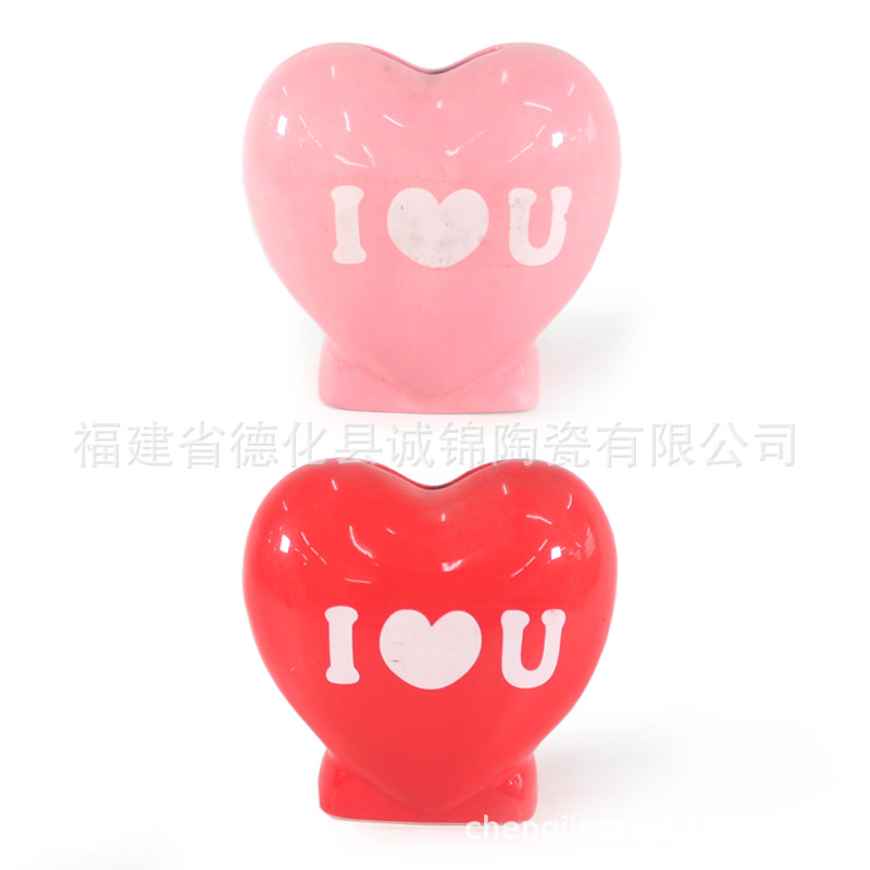 陶磁器の愛の貯金箱のハート型の貯金箱のアイデアのバレンタインデーの貯金箱の家庭の置物はlogoをプラスすることができます。