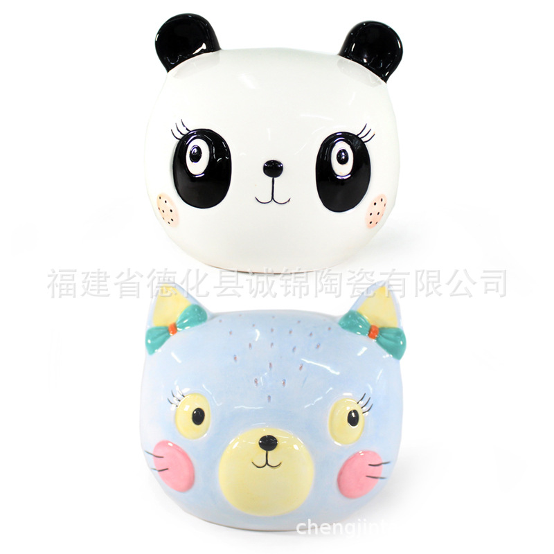 陶磁器のパンダの貯金箱のかわいい漫画の猫の動物の貯金箱の子供の贈り物の工芸品の置物