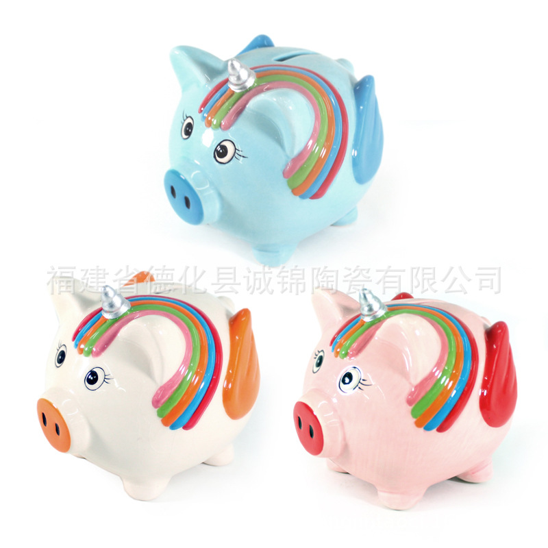 陶磁器の虹のブタの貯金箱のカブトムシの貯金箱の漫画の動物の貯金箱はlogoをプラスすることができます。