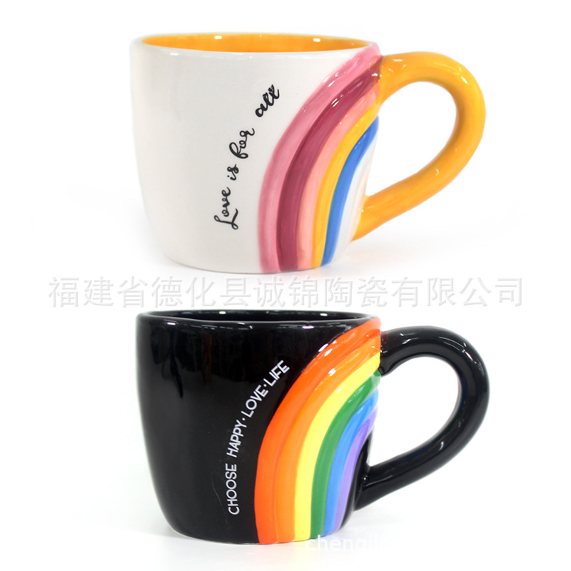 手描き虹カップ陶磁器虹マグカップ七彩コーヒーカップかわいい高颜値朝食カップ牛乳カップ