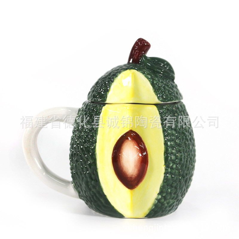 クリエイティブ牛油果コップ女子高颜値かわいいマグカップ蓋付きフルーツカップオフィスカップルカップ