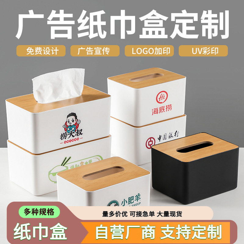 木製カバーティッシュボックスホテルレストラン広告印刷ロゴシンプルなティッシュボックス家庭用多機能クリエイティブナプキンボックス