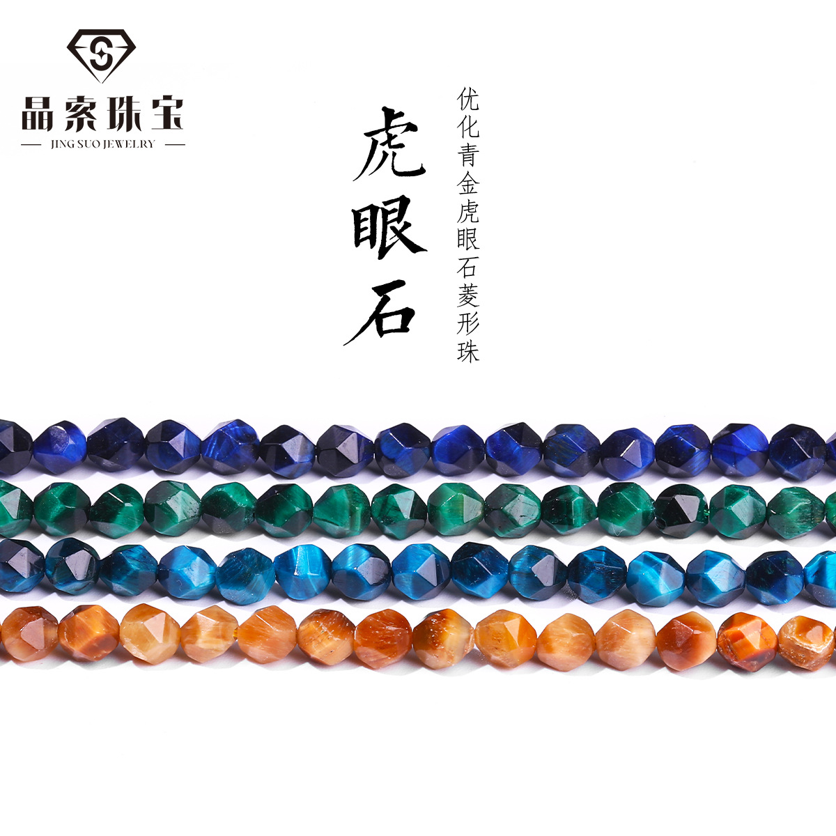 Jingsuo ジュエリー天然石アクセサリーファッションパーソナライズされた菱形大面カットカラフルなタイガーアイ石 DIY 菱形ビーズブレスレット