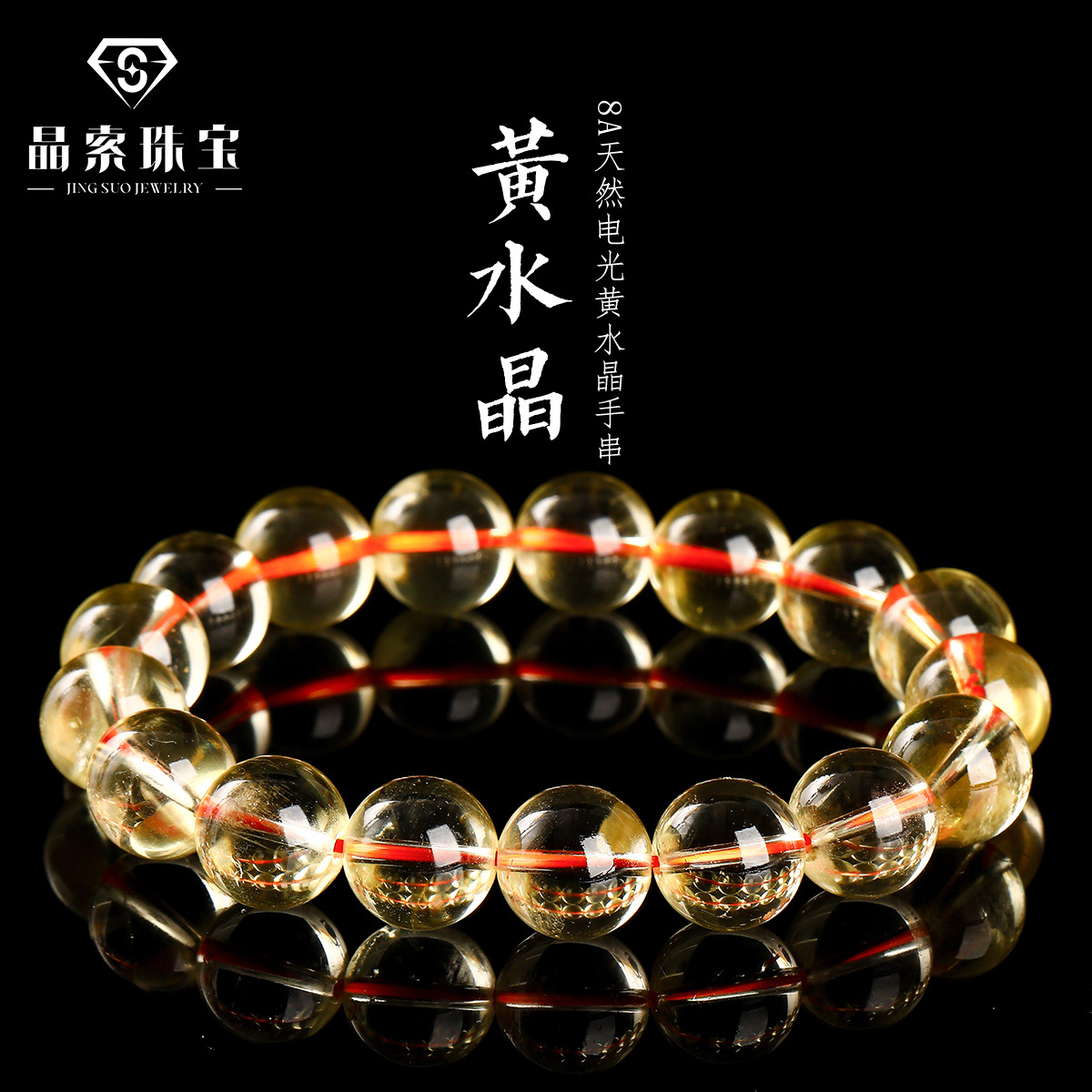 晶德ジュエリー 8A天然電光イエロークリスタルブレスレット DIY丸玉ブレスレット 氷砂糖雪梨イエロークリスタルブレスレット