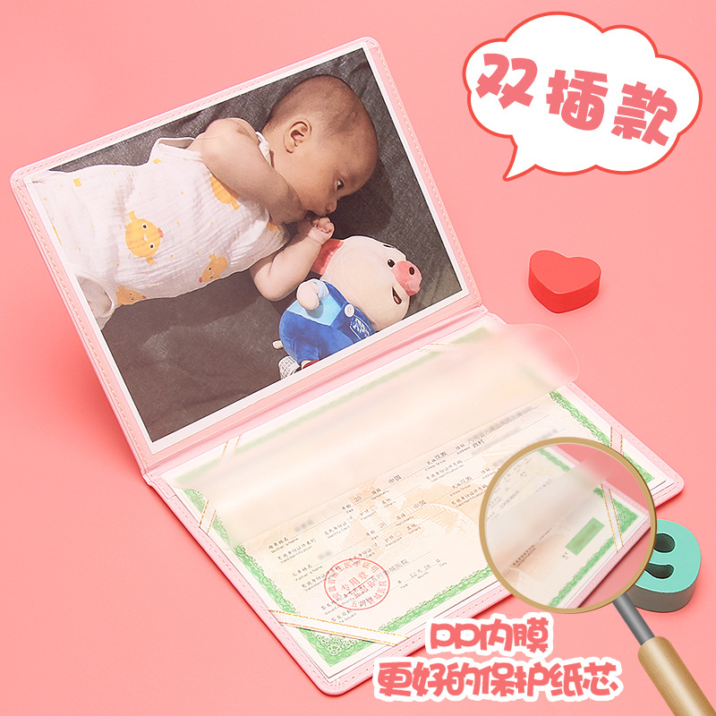 新版出生証明皮カバー新生児出生医学証明カバー赤ちゃん皮革ダブル挿入位タイプ横カバー