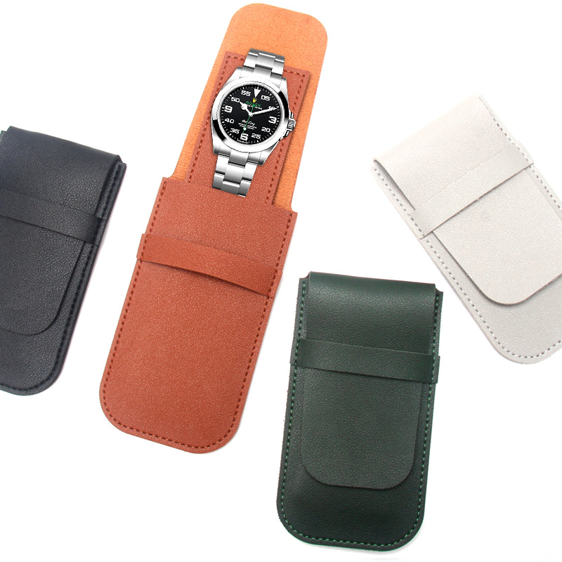 レザーウォッチバッグ、シンプルでポータブル、傷つきにくい、ユニバーサルクォーツ時計保護バッグ、ロゴ広告印刷可能