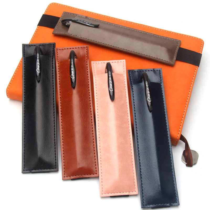 片手のペンの袋を入れて蓋式のペンの袋をかぶせます。PUは厚い皮革の贈り物のボールペンの収納袋を入れてロゴの広告をします。