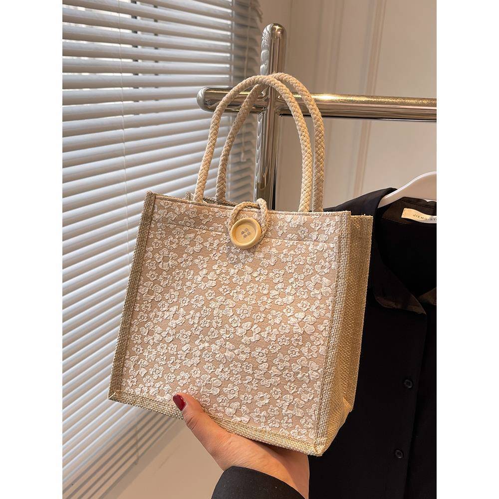 リネンポータブルランチバッグ女性のための 2024 新しいカジュアルお出かけママバッグ日本製リネン学生ハンドランチボックスバッグ