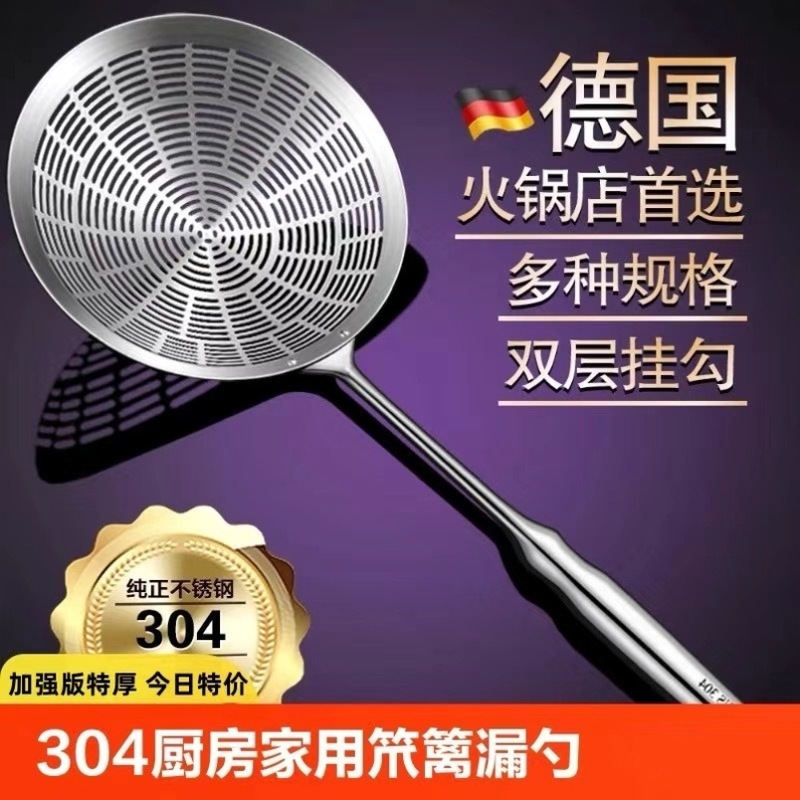 304 ステンレス鋼大型食品グレード揚げザル家庭用麺餃子用ザル長柄ザル水切りザル