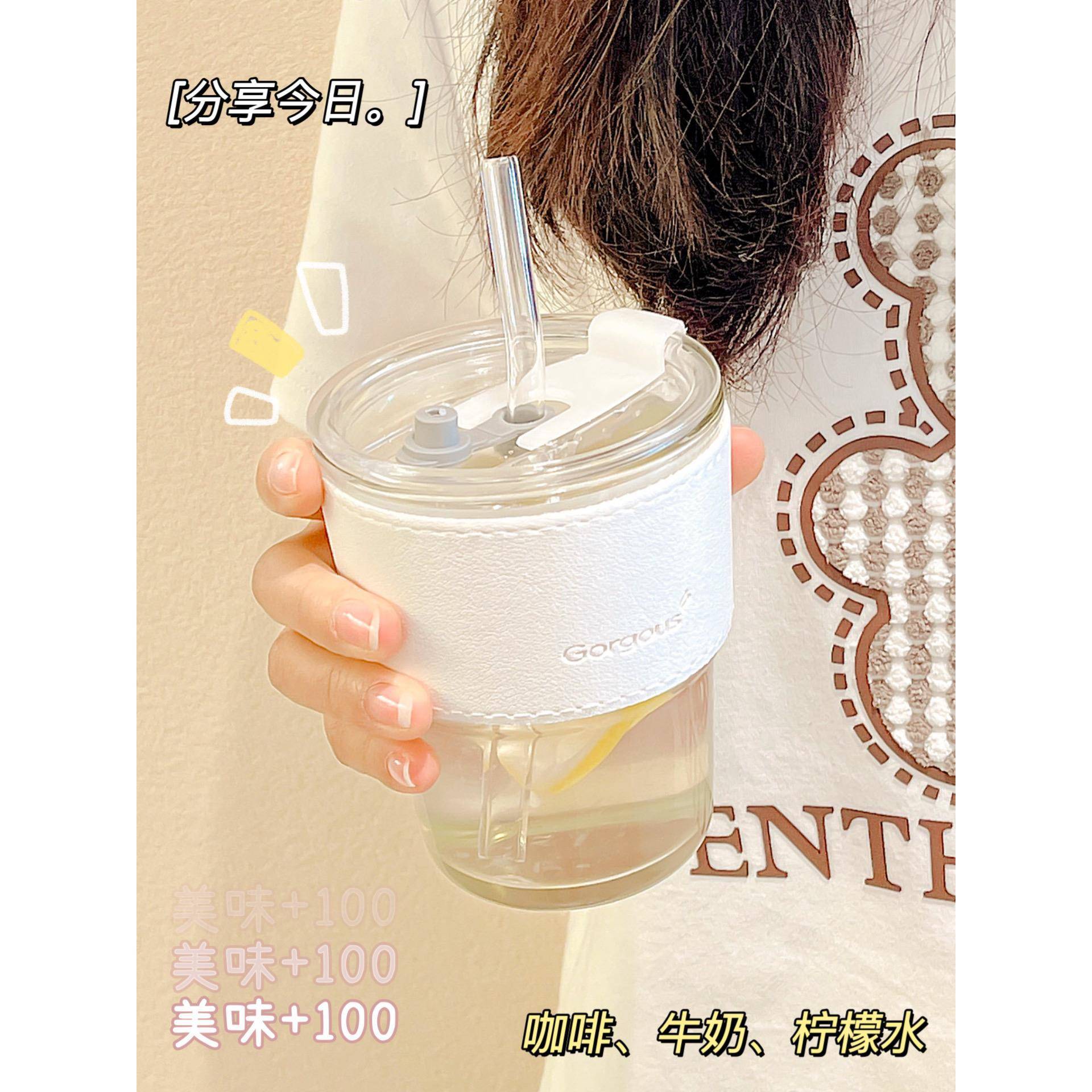 蓋付きインススタイルガラスカップ、子供用ストローカップ、家庭用ポータブルティーカップ、女性用高価値ミルクコーヒーカップ
