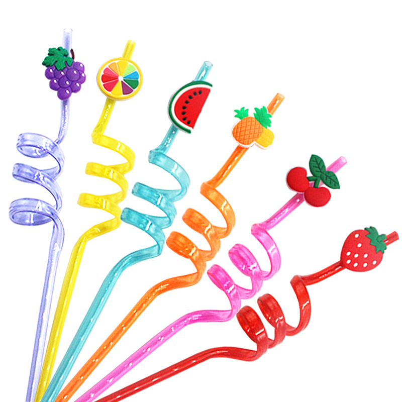 2021アマゾンの新商品の果物の曲がったストローの漫画の部品の祝日のパーティーの小さい贈り物は繰り返しストローができます。