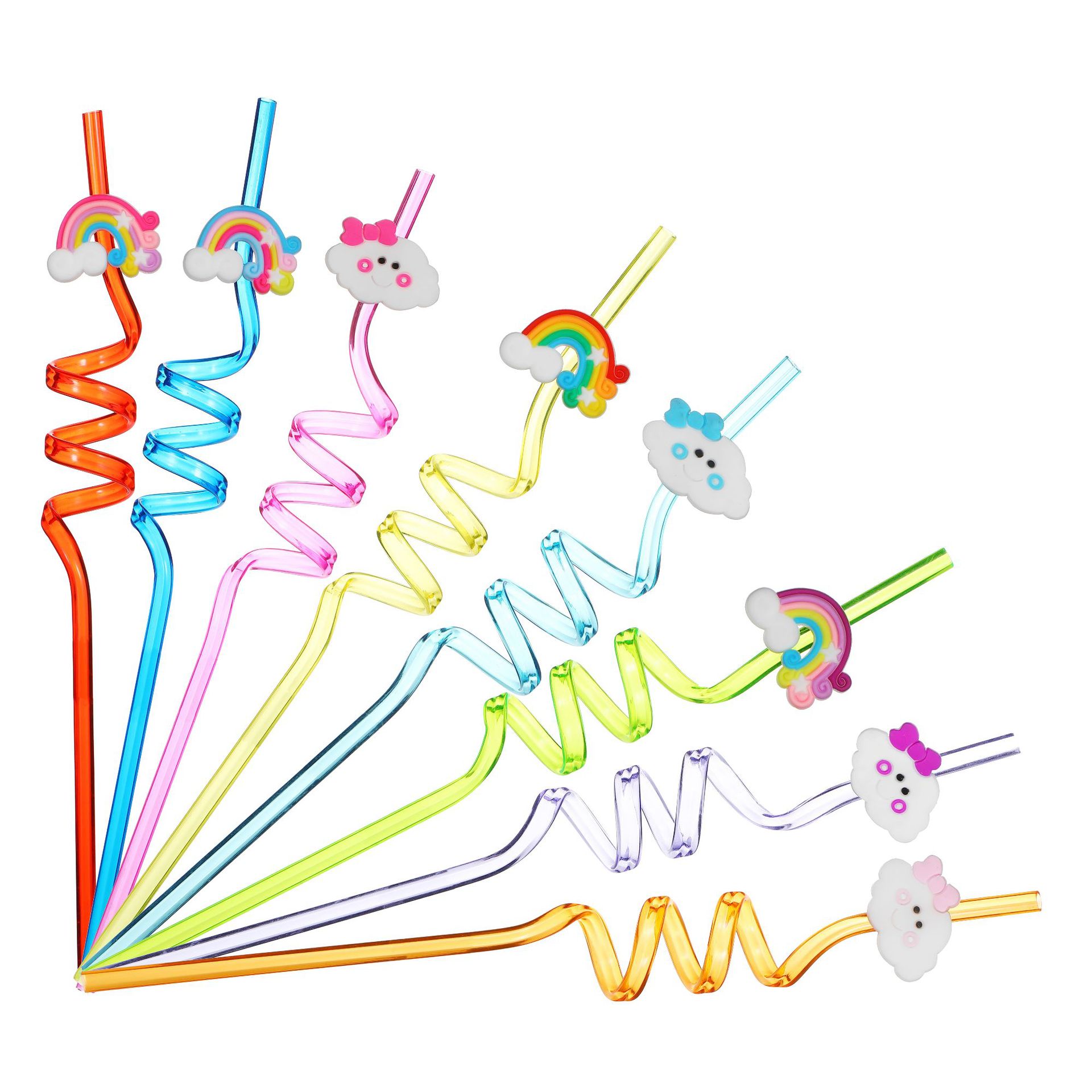 Amazonの新商品レインボー曲げストロー子供の漫画の部品のパーティーの小さい贈り物は繰り返しストローができます。