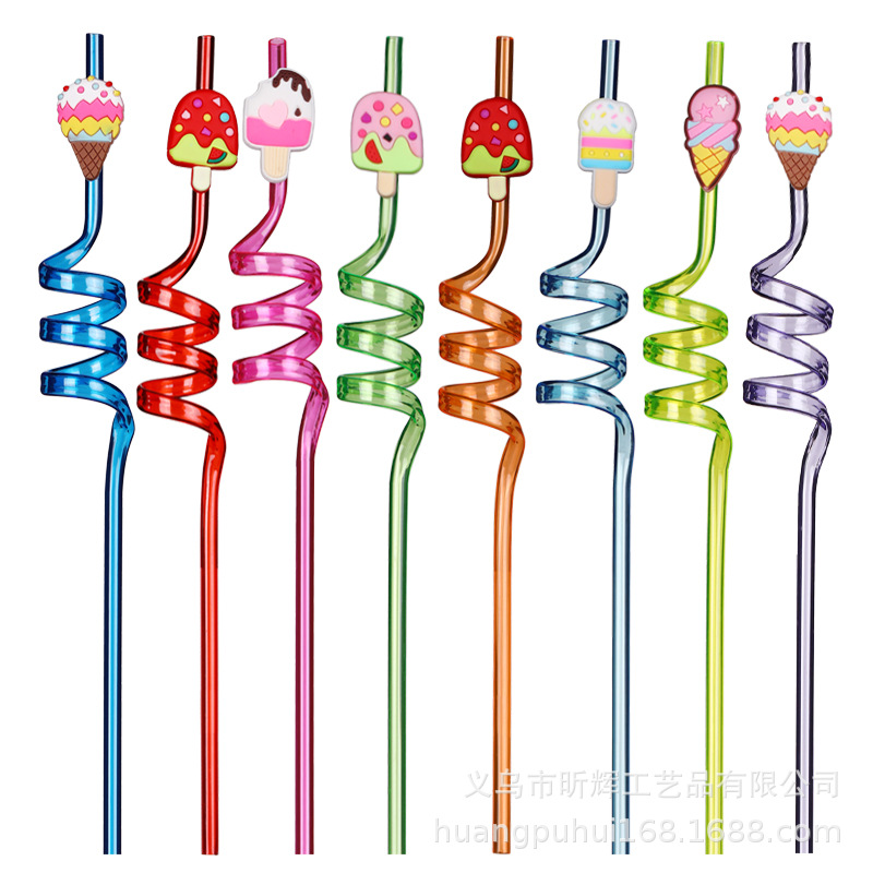 アマゾンの新商品アイスクリームの曲げストローpvcソフトゴム漫画部品パーティーのプレゼントは繰り返しストローができます。
