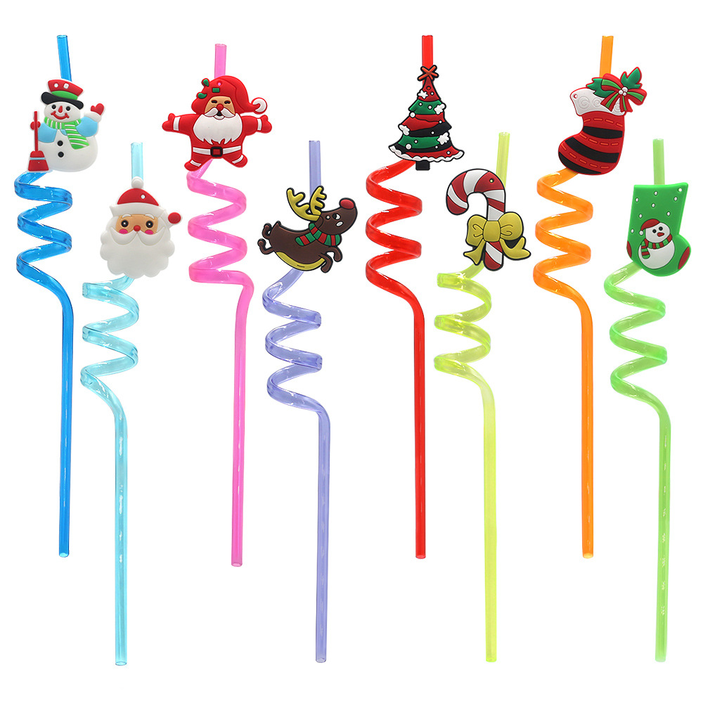 新しい越境クリスマスストローは繰り返しできます。PETストローメーカーはサンタクロースの祝日の部品を卸売りします。