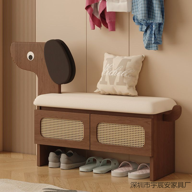 玄関用無垢材子犬靴交換スツール、家庭用籐製ドア靴キャビネット、靴交換キャビネット、玄関靴キャビネット、座りスツール一体型