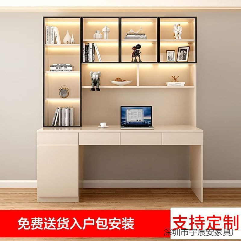 コンピュータデスク本棚デスク本棚一体型ホームデスクトップライティング寝室学生無垢材ライト高級ダブルデスク