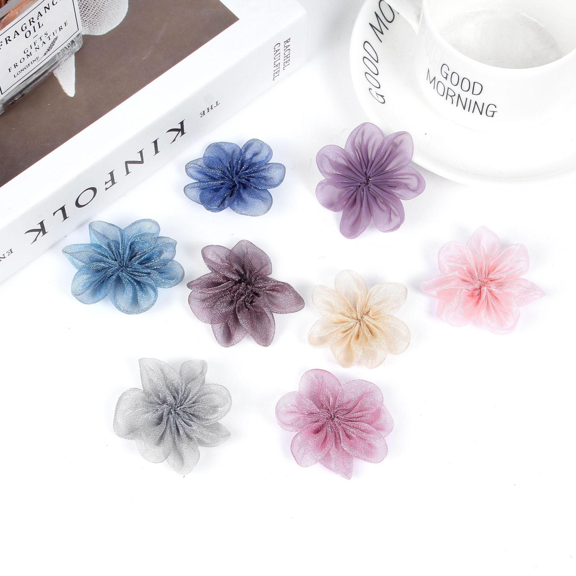 新商品の欧根紗は花の大腸にアイロンをかけます。