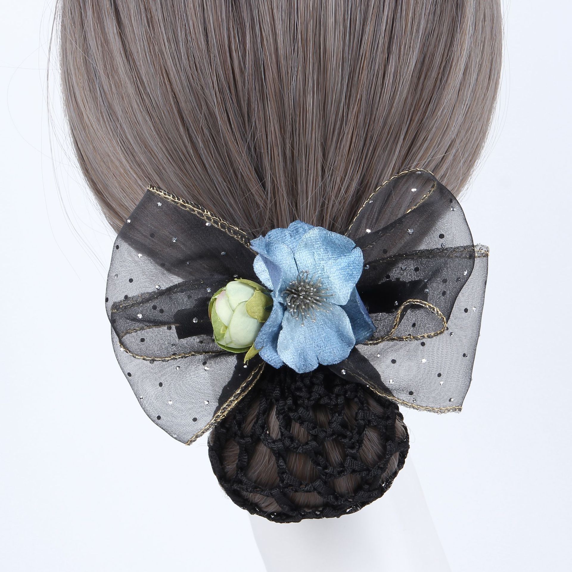 韓国版ネットの紗の蝶結びの後頭部の髪飾りの卸売りの頭の花の職業のネットのポケットのスチュワーデスの銀行のホテルの看護師