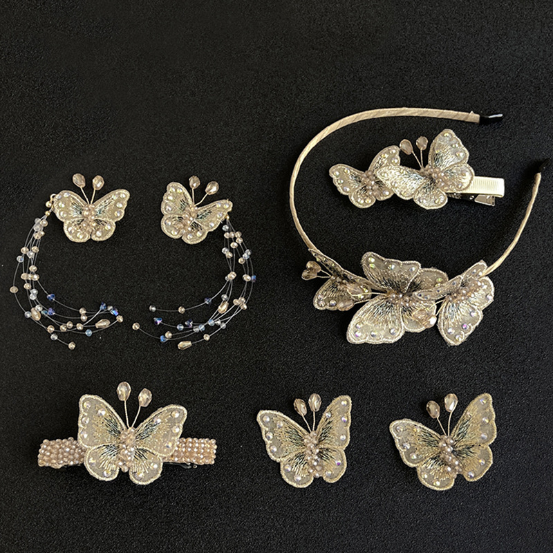 カスタマイズされたハイエンドの模造水晶手作業でネット糸蝶バネクリップ盤を作って、韓国版の気質刺繍ドリルのカチューシャを作る