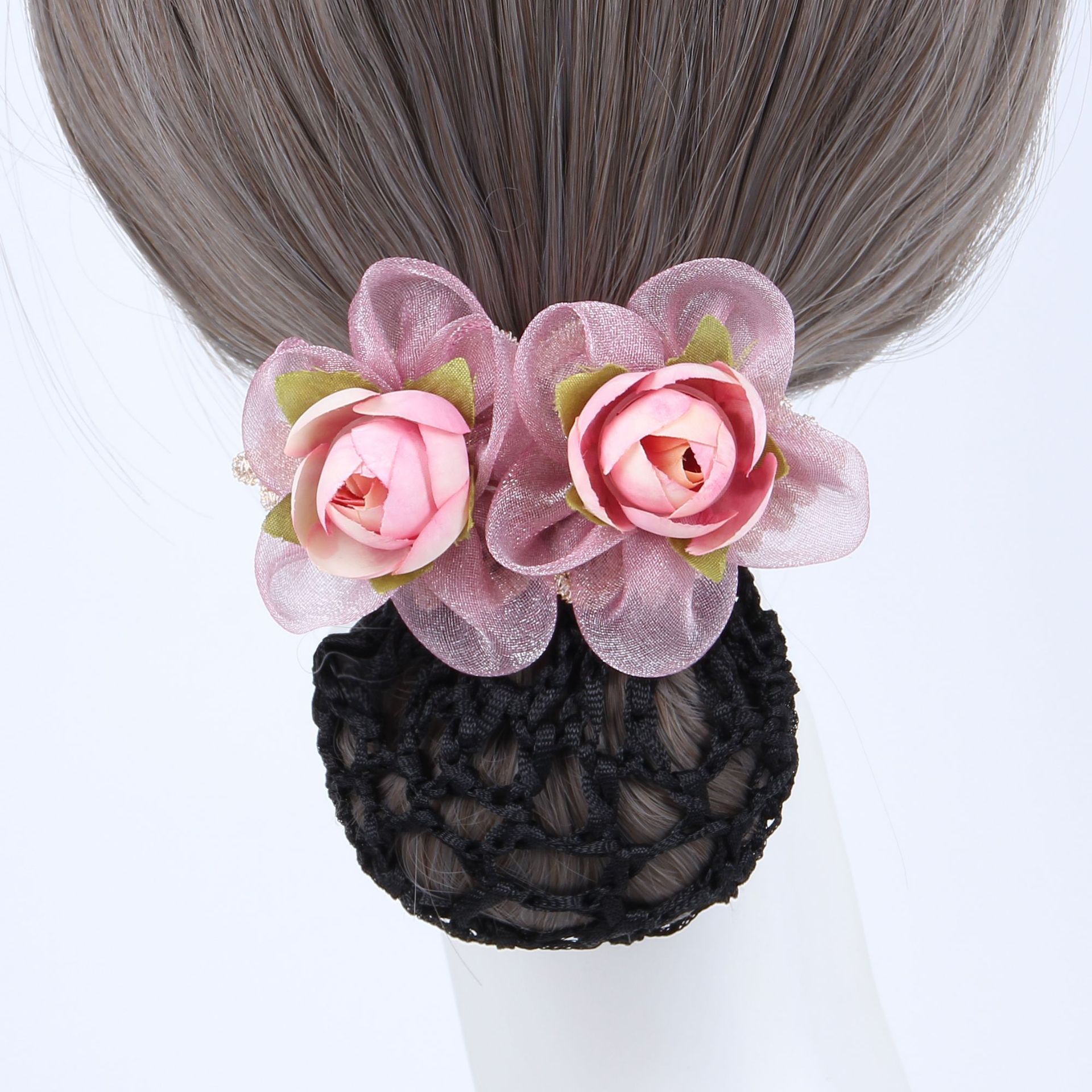 頭花女韓版銀行ホテル職業花髪ネット看護師盤髪後頭部ネットポケットバラ髪クリップ