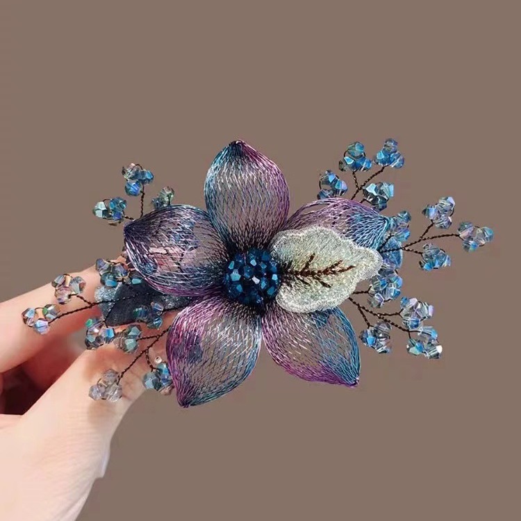 高級重工髪飾り純手編み双蝶髪カードトップクリップ髪飾り一字クリップスプリングクリップ