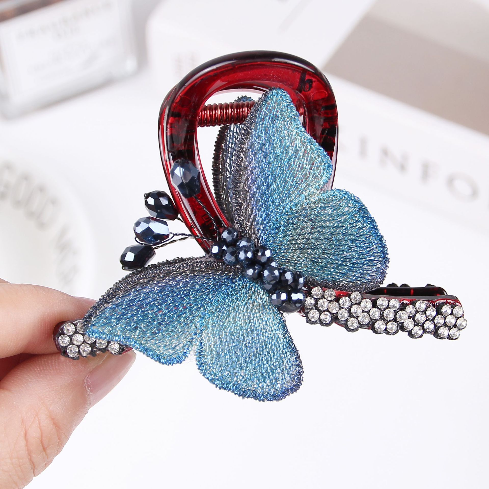 気質復古風刺繍蝶クリップ女中号2024新製品後頭部半発サメクリップ髪飾り