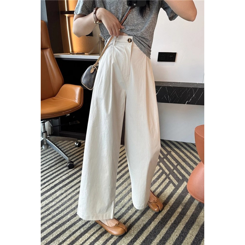小柄な人向けのハイウエストウォッシュカジュアルワイドレッグパンツ2025夏ゆったりスリム9点ストレートパンツオーバーオール1枚