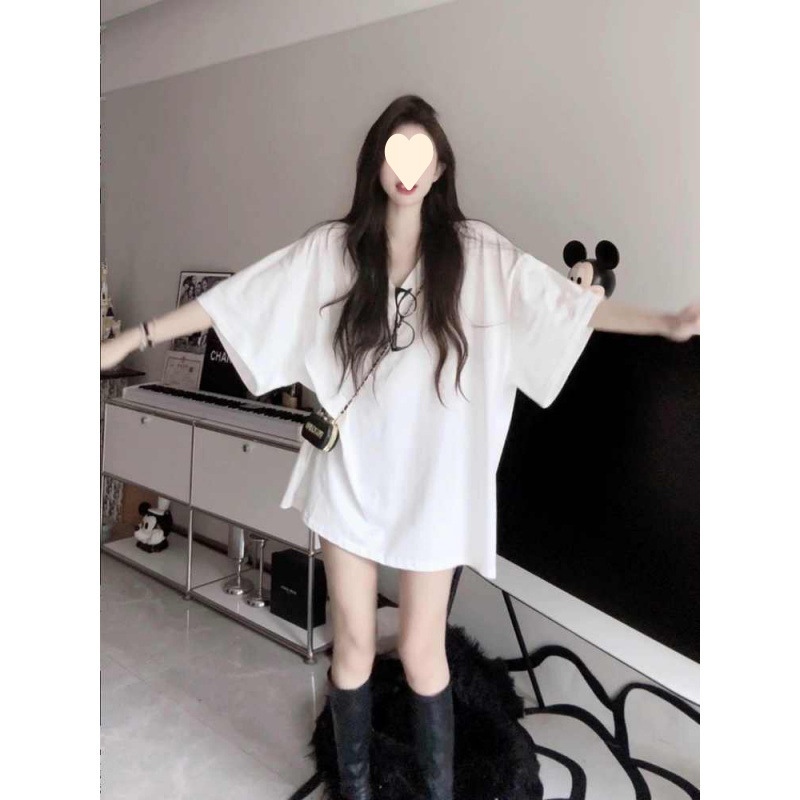 女性用右肩Vネック半袖Tシャツ、夏韓国風アイスシルク大判バージョン、ゆったり、シンプル、万能カジュアル半袖トップス、イントレンド