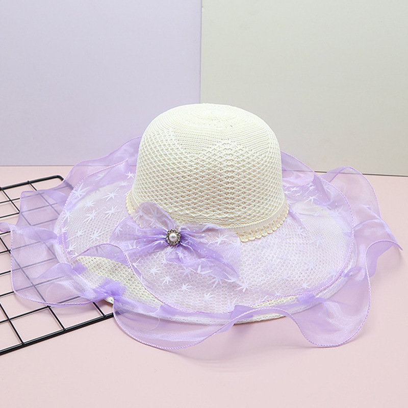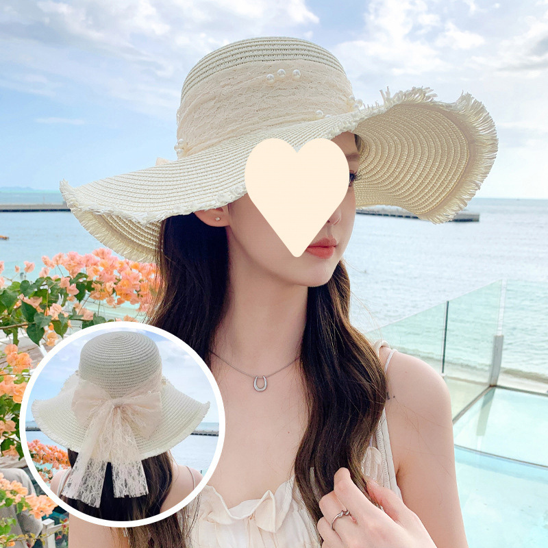 日よけ帽子の女性の夏のビーチの麦わら帽子の新型レースの透かし彫りの麦わら帽子は旅行の日よけ帽子の海辺の太陽の帽子に行きます。