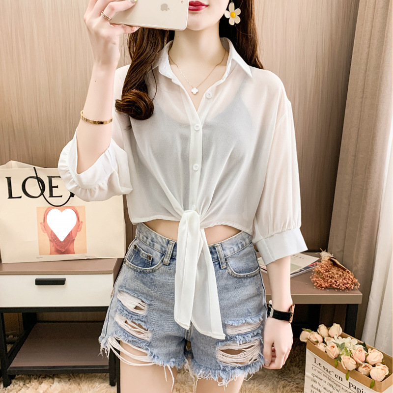 ストラップ付きスカートの小さいショールの薄いコートのシフォンのカーディガンの短いタイプの日焼け止めの上着の女性の夏の外はブラウスを掛けます。