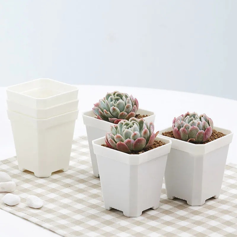 7*7cm小白方多肉植木鉢プラスチック植木鉢厚手小方盆多肉植物トランペット植木鉢育苗カップ