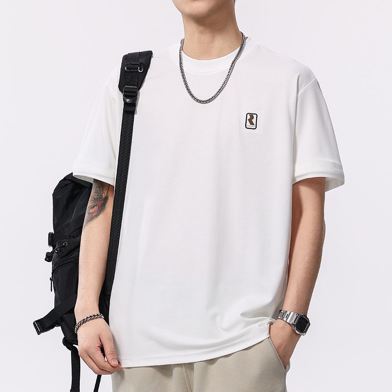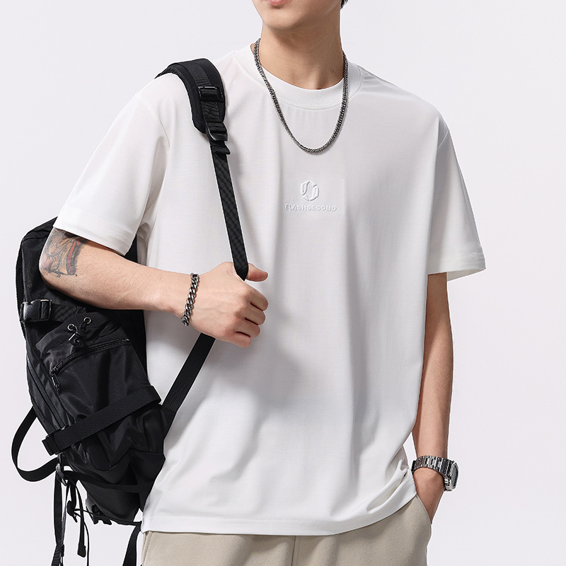 クールアイスシルク通気性メンズ半袖Tシャツシンプル刺繍2025夏新作トレンドブランドカジュアル大きいサイズTシャツ