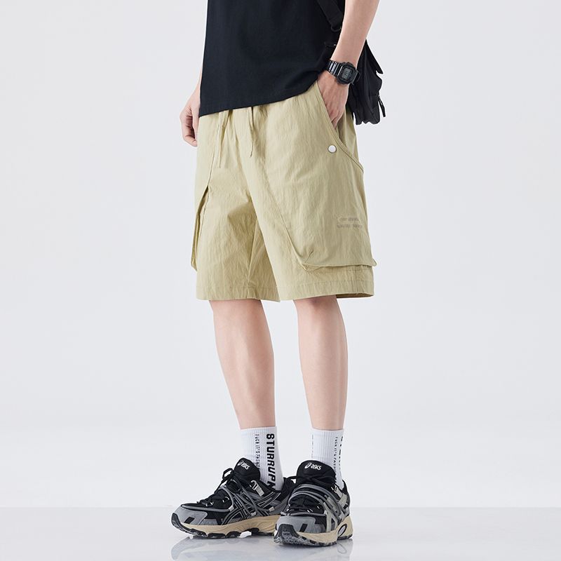 カーキトレンディブランドカジュアルショートパンツメンズ夏メンズマルチポケットファッショナブルビーチルーズ5点ミッドパンツ