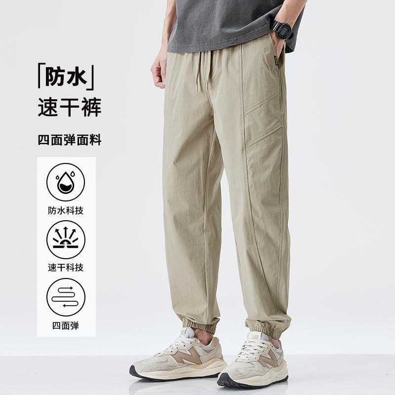 アメリカンアウトドアスポーツ防水速乾カジュアルパンツメンズ2025春夏ルーズレッグタイストレッチスポーツ9点パンツトレンディ
