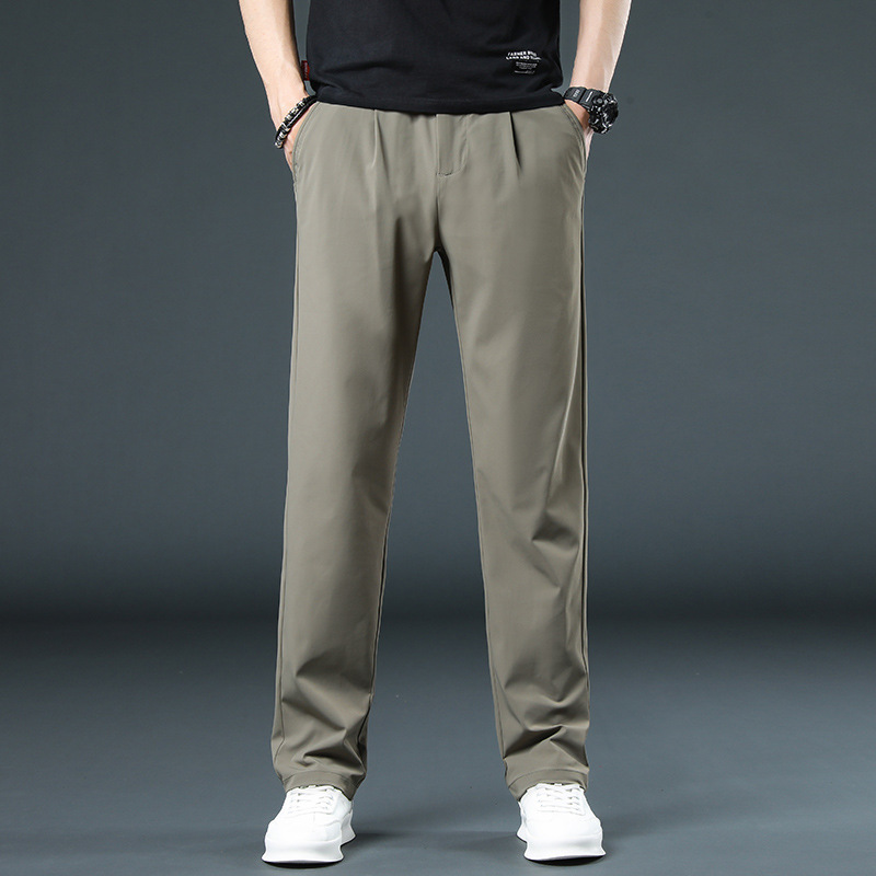アメリカのハイエンドアイスシルク速乾性カジュアルパンツメンズ夏薄い2025新しいストレートルーズビジネスノンアイロンパンツ