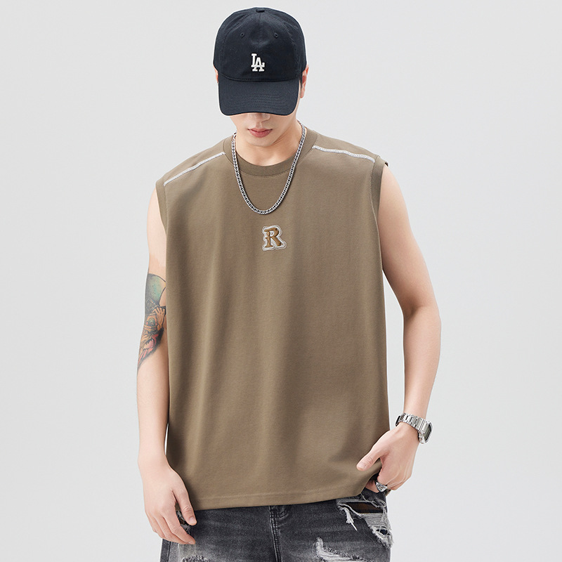 夏の新作ノースリーブベストTシャツメンズ刺繍ノースリーブTシャツ日本のレトロトレンドルーズベストインナーレイヤリング