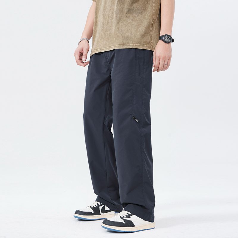 アメリカンスタイルのメンズ速乾パンツ、ストレートレッグ、ゆったりとしたアウトドアスポーツアイスシルクカジュアルパンツ、夏用の薄手でトレンディで多用途