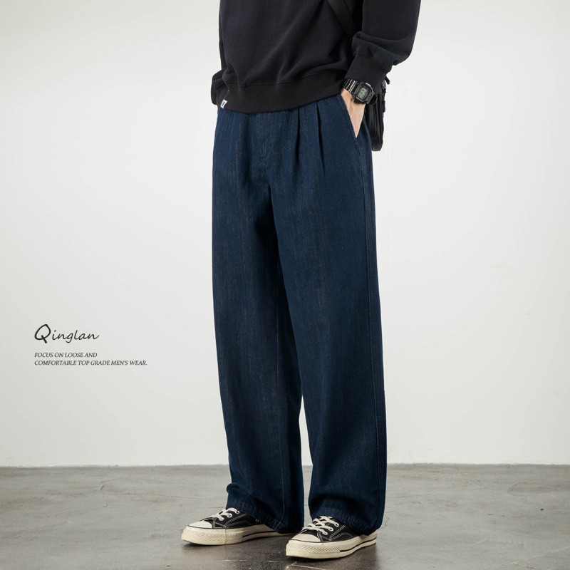 オリジナルカラージーンズメンズルーズストレートワイドレッグドレープトレンディパンツ2025春新作多用途ハイエンドカジュアル