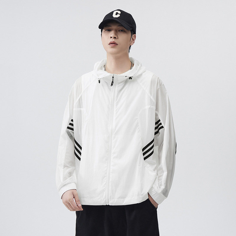 UPF50+ 夏の新しいアイスシルク日焼け防止服メンズ屋外 3 ストライプハイキングジャケット軽くて通気性のある日焼け防止服
