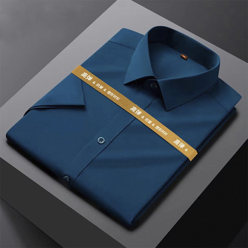 男性用四面高弾性カジュアル半袖シャツ、アイロン不要の無地カジュアル多用途ベージュシャツ、メンズプロフェッショナルトップス
