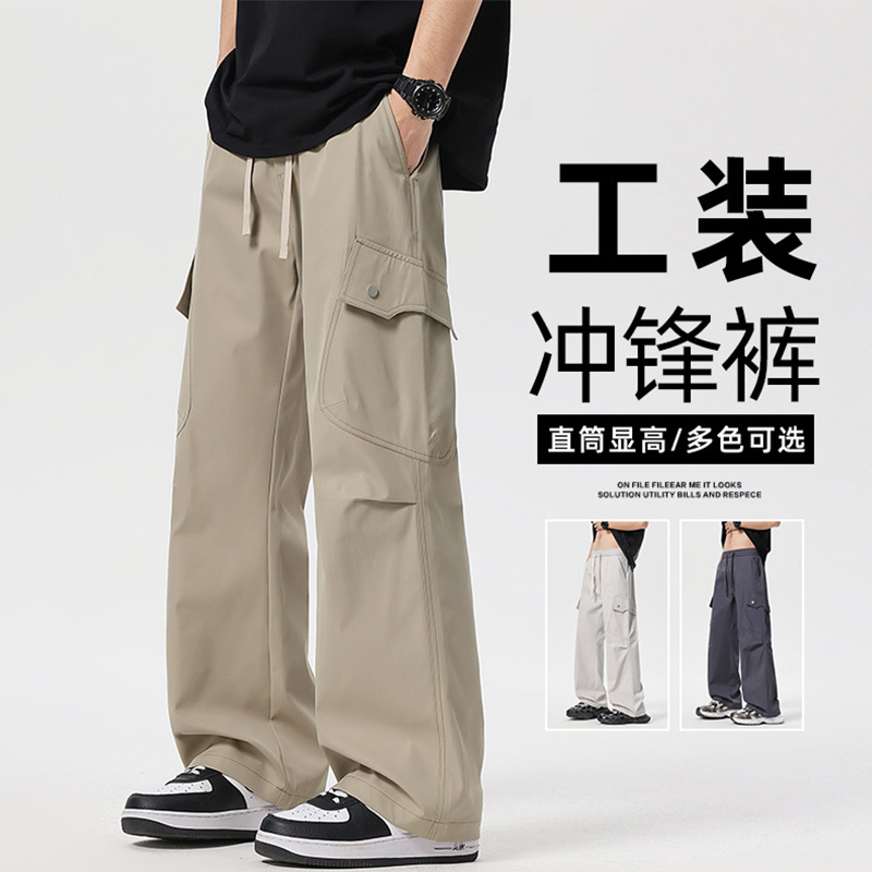 薄いオーバーオールメンズ夏 2025 アメリカの機能的なハイストリートカジュアルパンツボーイズルーズストレートアサルトパンツ