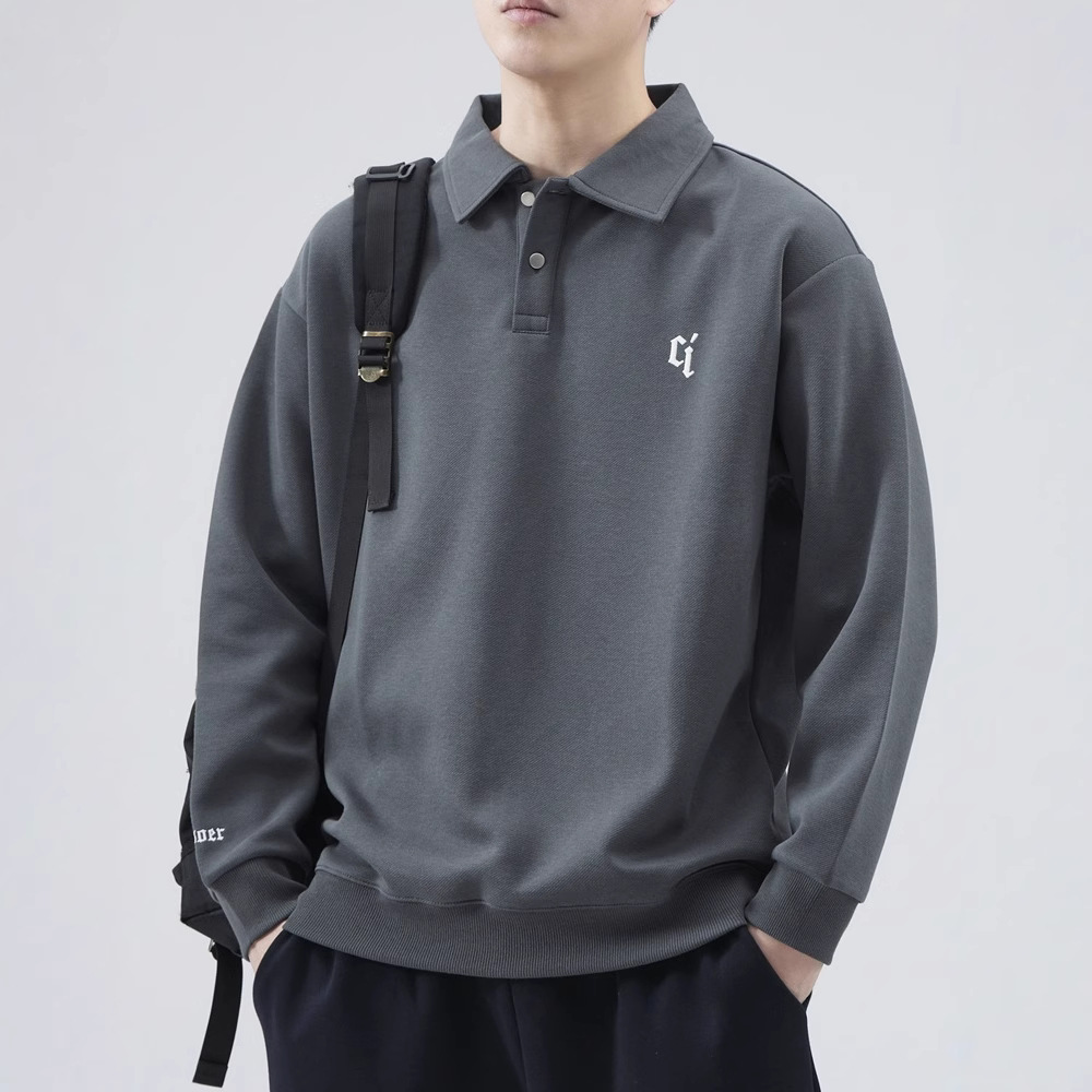秋の長袖poloシャツの男性のゆったりとしたカジュアルな重ポンドのパーカーの潮牌のアルファベットの刺繍のtシャツの秋の服の襟の上着