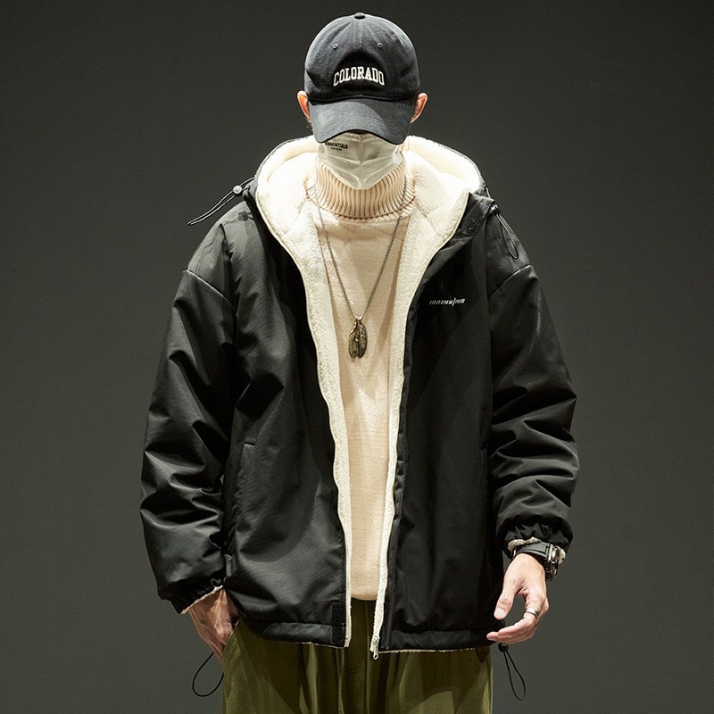子羊の毛のコートの男性のタイプの冬のアメリカの両面はぬいぐるみのジャケットの綿服の男性を着て冬の保温の綿服を厚くします。