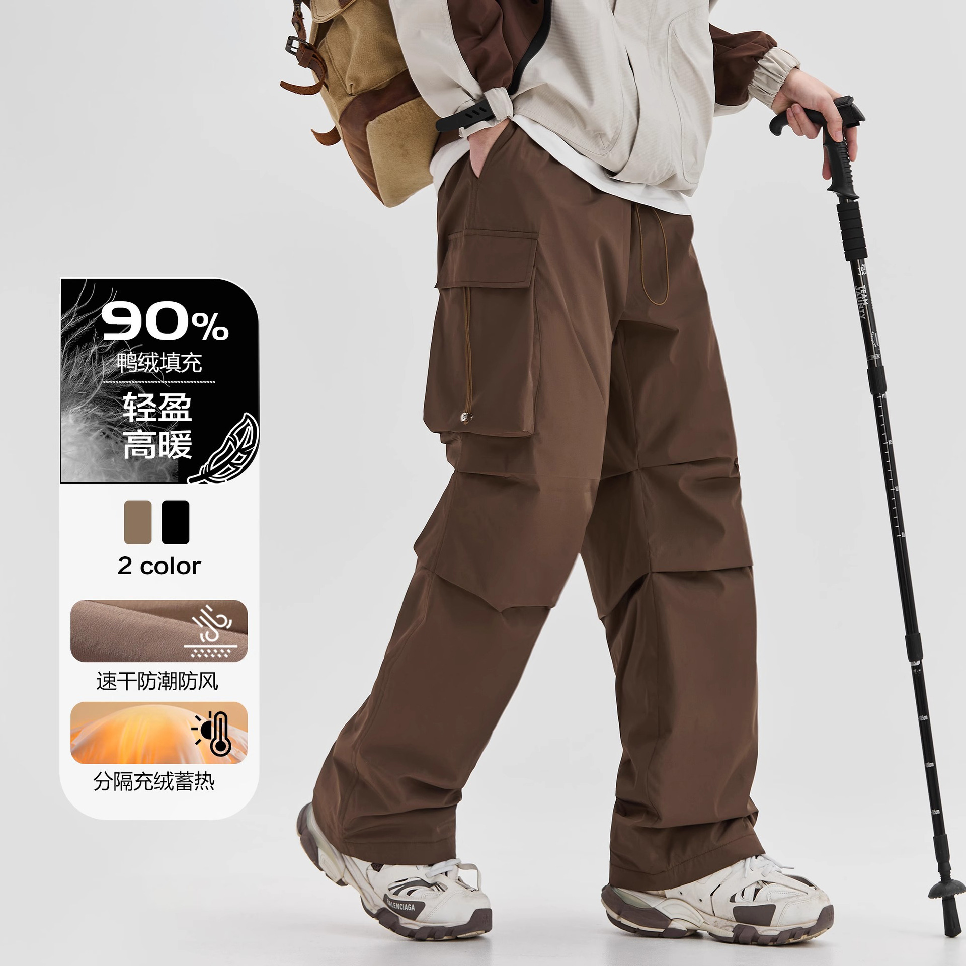 ダウンパンツ男性アメリカ風しわ多ポケット傘兵工装アウトドアストレート突撃冬新型ハイエンドカジュアルパンツ