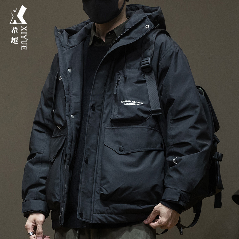 新国標潮牌灰鴨毛ダウンジャケット男連帽工装風冬コート男性大サイズ黒コート潮
