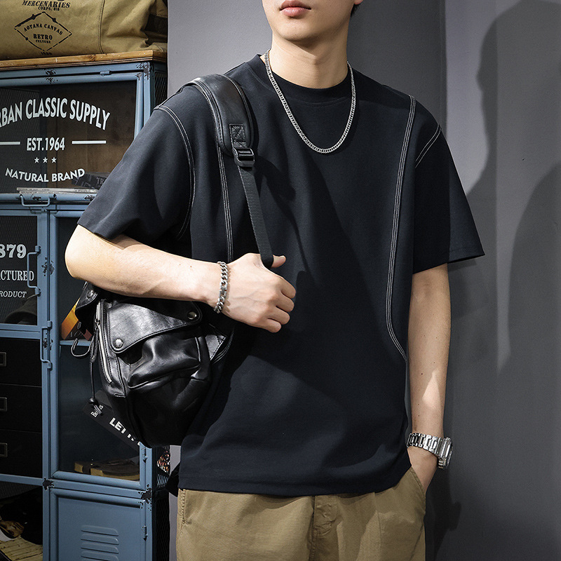ハイエンドの露出ステッチ半袖 T シャツメンズ夏 2025 新しいトレンディなブランドレトロルーズラウンドネックスプライシング半袖 T シャツ