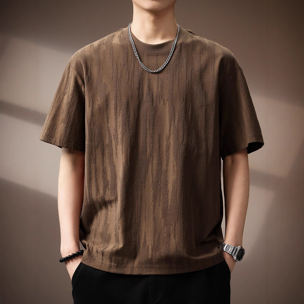 高級樹皮質感半袖Tシャツメンズゆったり夏新作トレンドブランド大きいサイズラウンドネックカジュアル質感Tシャツ