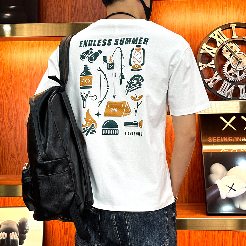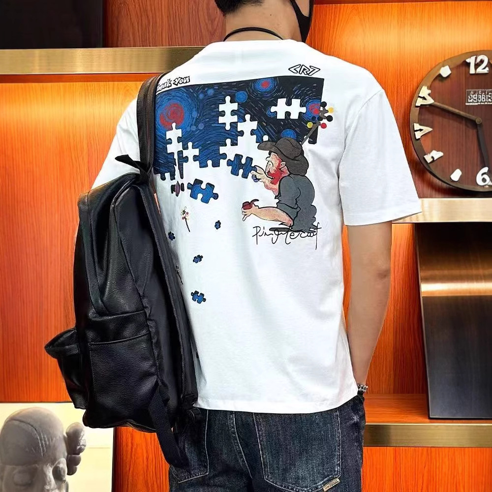 プリント半袖 Tシャツメンズ 2025 新作夏服アメリカンファッションブランドプリントルーズ半袖 Tシャツメンズ薄手スタイル