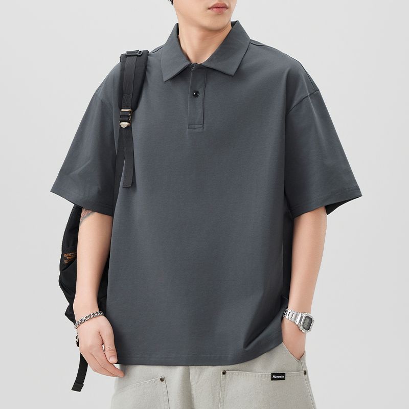 高級北欧グレー軽くて大人なシンプルクール半袖ポロシャツTシャツメンズ夏ルーズ半袖Tシャツトップス男性用