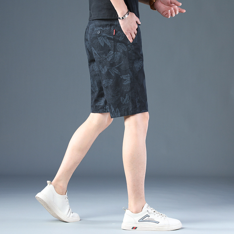 高級純綿カジュアルショーツメンズプリントミッドパンツ夏薄手通気性ベルト付きメンズミッドパンツ